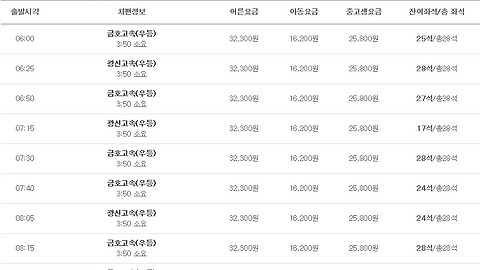 인터넷으로 예매하시는 경우 위 사이트에서 해주세요 시외버스예매 통합 사이트입니다. 티머니에서 시외버스 예매를 하나보네요. 여기서 출발지 도착지 조회하시면 시간이랑 좌석상황을 볼 수 있습니다.