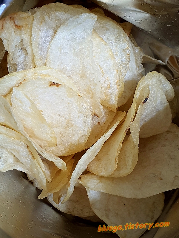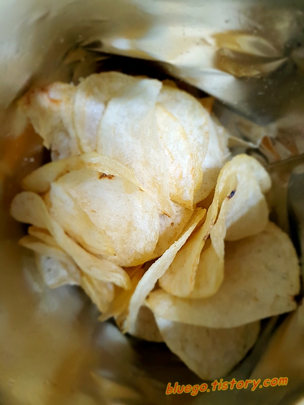 질소과자 답게 포테이토 칩이 아주 바닥에 깔려 있는 것 같아요. 봉지가 커서 왠지 더 그렇게 느껴지네요.