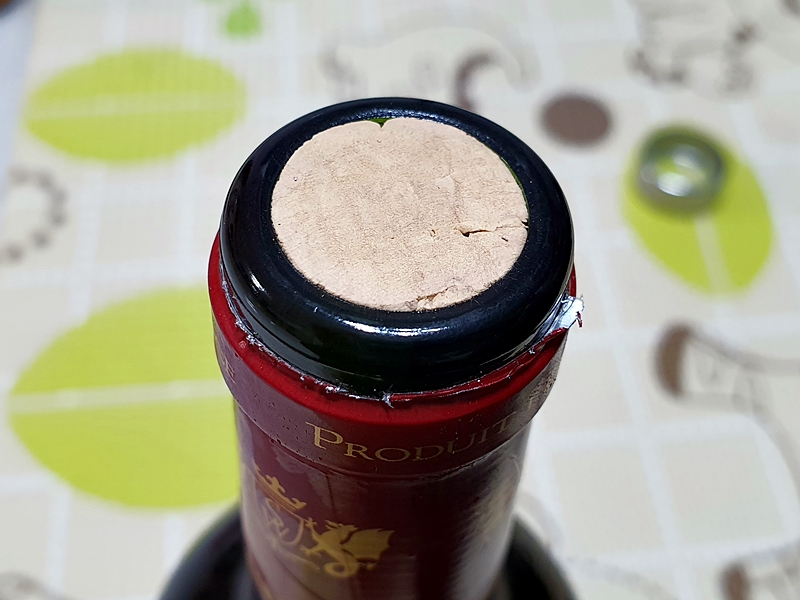그럼 껍질을 다 벗기지 않아도 이렇게 코르크 마개가 주둥이에 안착되어 있는 모습이 보입니다. 이러면 이제 소믈리에 나이프를 사용할 때가 된겁니다. 코르크에 스크류를 잘 돌려서 꼽아주세요