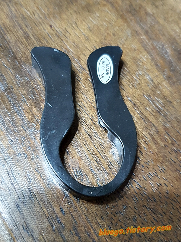 먼저 이 녀석부터 살펴볼게요. 말발굽 처럼 생긴 요 물건은 대체 어디에 쓰는 물건인고.. 하시는 분들 많으시더라구요. 이건 와인을 살때 들어있는 경우가 많은데요. 호일리무버 입니다. 와인병을 막고 있는 코르크마개 위에 은박으로 처리된 부분 이 바로 호일인데요. 이 걸 쉽게 잘라주는 녀석입니다. 뒷면을 보시면 조금 감이 오실겁니다.