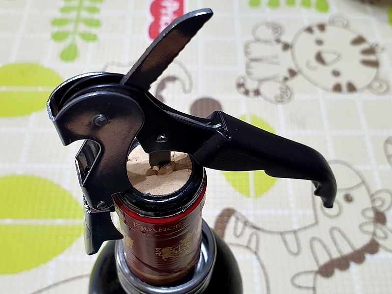 바로 이렇게 말이죠. 좌측 손잡이는 꼭 고정이 되어야 합니다. 그러면서 우측 손잡이를 밀어 올리시면!! 이렇게 코르크 마개가 항복하고 올라온답니다. 어떤가요? 보기는 쉽지만 몇번 연습이 필요합니다. 한번 감을 잡으시면 바로 되실거에요.
