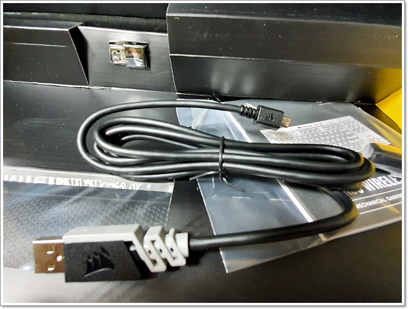 이 연결선이 바로 유선 연결 usb 입니다. 커세어 마크가 새겨져 있네요. 나름 디자인도 멋진것 같습니다.