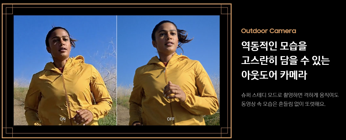 아웃도어 카메라 기능은 위 사진으로는 어떤건지 정확히 감이 안잡히네요. 꺼진 상태가 더 잘나와보이는데..
