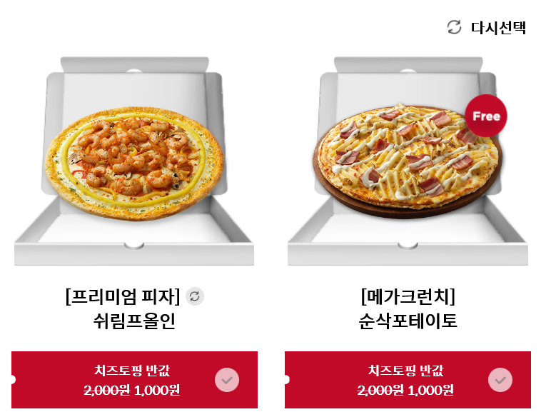 요즘 물가가 너무 비싸서 참 아쉽네요. 피자먹기도 힘들고요. 제 생각에 메가크런치는 별로였어요 크기도 조금 작고요 라지 사이즈로 1+1 해주는게 아닌것같습니다. 저 같으면 쉬림프 올인이나 이탈리안살시챠 같은 프리미엄 피자를 50% 할인할때 먹는게 더 좋을 것 같습니다.