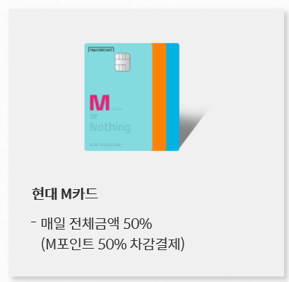 신용카드 중에서는 m카드가 할인이 됩니다. 이것도 m포인트가 있어야 하니.. 많이 할인되는 건 아닙니다.