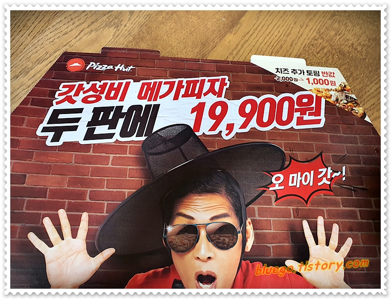 이렇게 피자를 찾아왔습니다. 피자 상자가 이렇게 생겼네요. 갓성비 메가피자라.. 이런피자는 시키면 후회가 되더라구요. 막상 별로인게 많더라는..