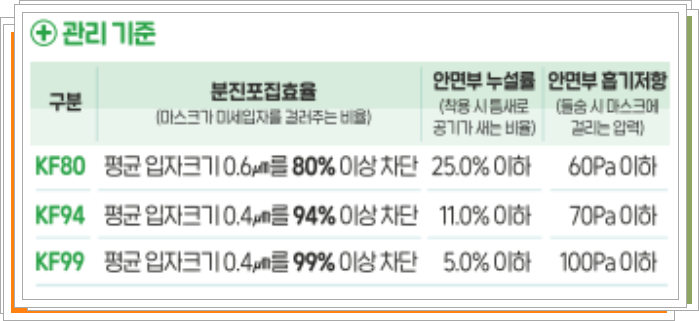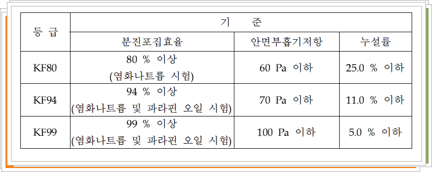 마스크 등급 및 기준