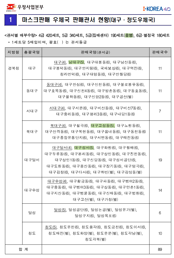 이런식으로 대구 청도지역 우체국도 나와있습니다. 전체 우체국 현황은 파일로 첨부해놓겠습니다. 참고하시기 바랍니다. 바로 오늘부터 판매가 되는건데.. 얼마나 효과가 있을지 모르겠네요