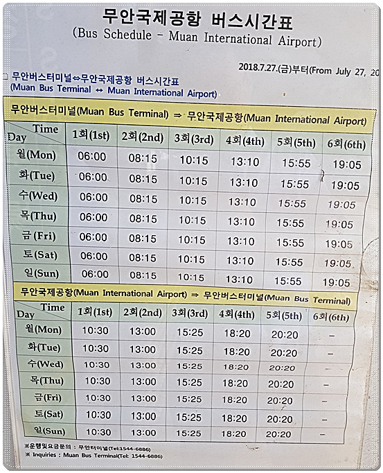 이상으로 무안공항에서 이용할 수 있는 버스시간들을 확인해 보았는데요. 코로나가 끝나고 여행가실 분들은 참고하시기 바랍니다.