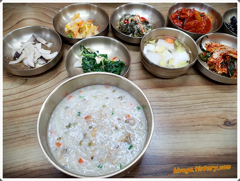 죽이 나오면 이렇게 한상 가득 나옵니다. 역시 남도네요. 그릇도 예쁘고 반찬도 정갈하게 나옵니다. 모두 식당에서 직접 만드신 듯 한 음식들이네요. 죽을 한번 먹어보니 아주 진합니다. 바지락도 많이 들어 있고 쌀도 좋은 것 같습니다. 김제평야에서 나온 좋은 식재료들을 쓰신것같네요