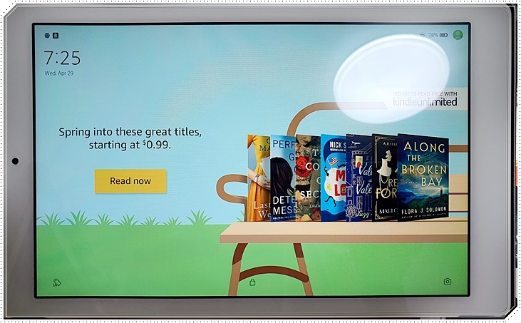 잠금화면 상태에서 나타나는 아마존 관련 광고입니다. 이런식으로 책이나 제품을 광고하고 있네요. 이것도 고객센터에 이야기하면 한국에서 사용한다느 이유로 원격 조정을 통해 제거해 준다고 합니다. 그래서 고객센터에 문의해서 제거되었다는 답변을 들었는데 잘못한건지 안없어지네요.