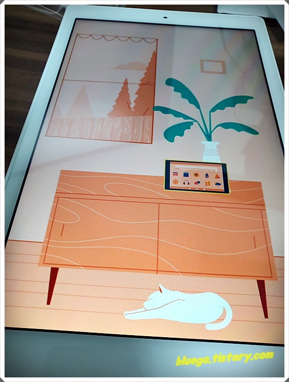 저렴이 케이스지만 이렇게 태블릿을 잘 받쳐주긴 합니다. 고장 없이 잘 써야 할텐데 말이죠. 몇일 사용해보니 유치원생이나 초등학생용 아니면 더 어린 아이들이 막 쓰기엔 참 좋을 것 같습니다. 튼튼해보이고. 화면도 크고요. 특히 화질이 정말 좋아보여요. 그리고 스피커도 두개가 스테레오로 달려있고 음질도 들을만 합니다.