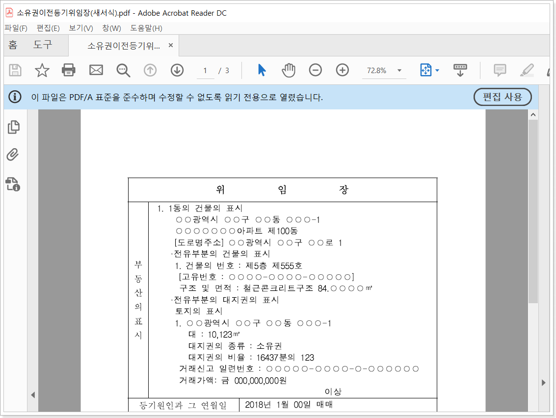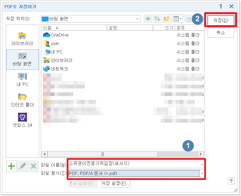그럼 저장하고 싶은 파일 이름을 설정하고 저장하기 버튼만 누르시면 끝납니다. 아주 간단하죠? 저는 예전에 사용했던 부동산 매매시 사용하는 위임장을 변환해보았습니다.