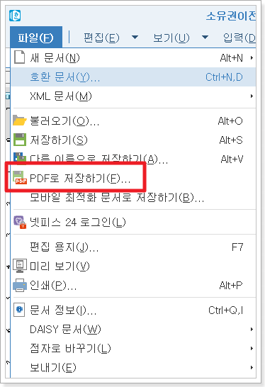 한글 프로그램으로 PDF 변환