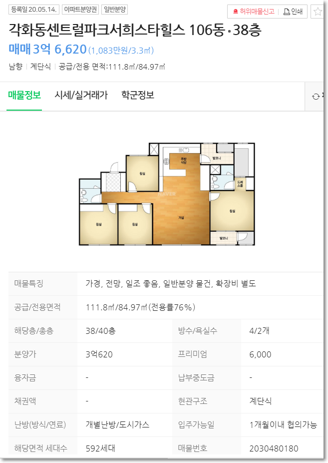 주변에 신축으로 들어오는 각화서희 스타힐스는 분양가가 3억선이었는데요. 현재 38층 물건 피가 호가 6천에 네이버에 등록되어 있습니다. 여기가 20년 12월에 준공예정인데요. 아무래도 각화 포레스트가 높은 가격에 분양된다면 서희에도 많은 변화가 있을 것 같네요
