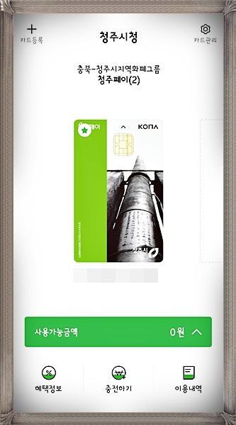 그리고 카드가 없으신 분들이라면 이전글을 보시고 카드먼저 신청을 하시기 바랍니다. 앱에서 카드를 신청하면 카드를 집으로 배송해주는데요. 청주 거주하시는 분들은 아래 글을 보시고 직접 가서 카드를 구하실수도 있습니다.