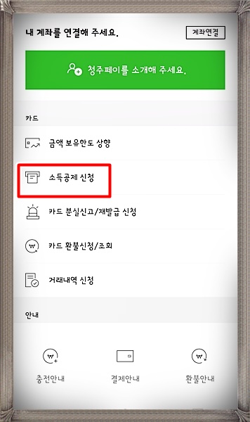 소득공제 신청은 카드등록후 바로 하시기 바랍니다. 왜냐하면 신청 이전에 쓴 내역은 소득공제가 되지 않기 때문입니다. 그러니 받자마자 신청하시고 충전을 하시는걸 추천드립니다.