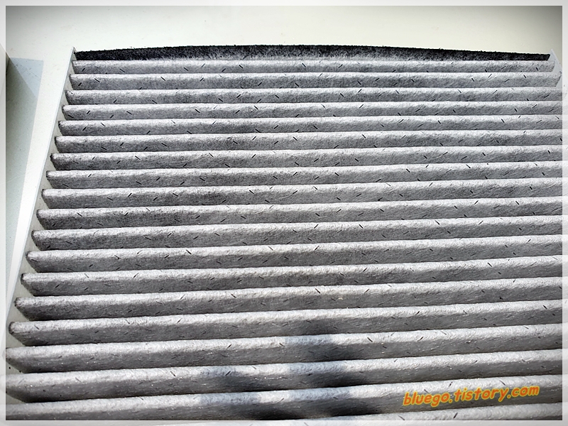 새 필터는 확대 했을 때 이렇게 깨끗하네요. 에어컨 냄새도 좀 걸려줬으면 좋겠습니다.