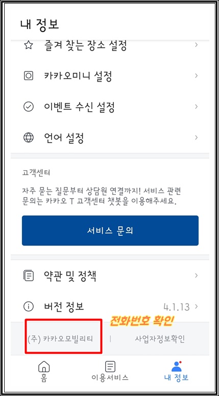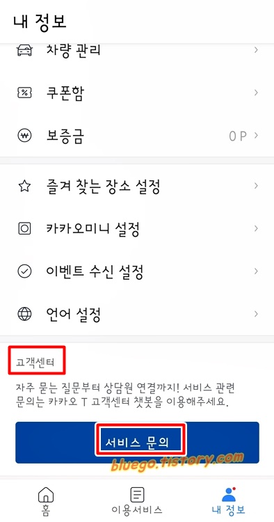 내정보-서비스문의 아래쪽에 보시면