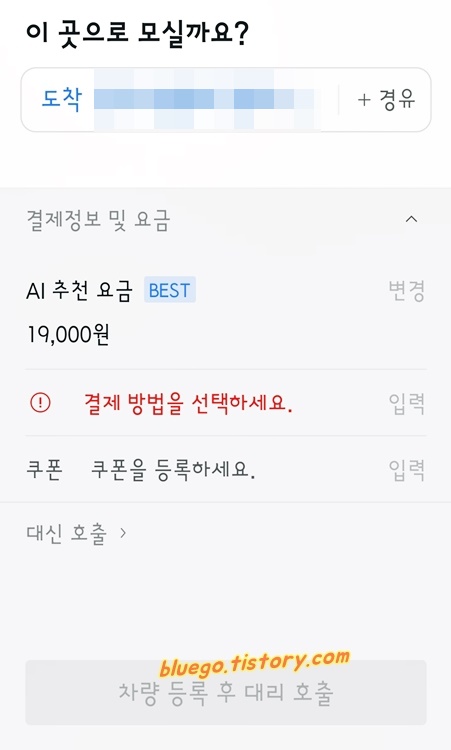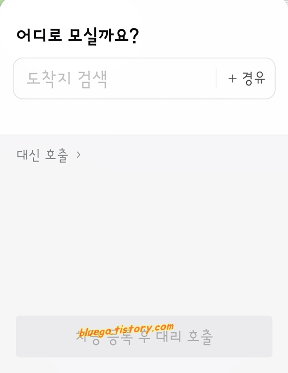 티 대리로 도착지를 검색하면