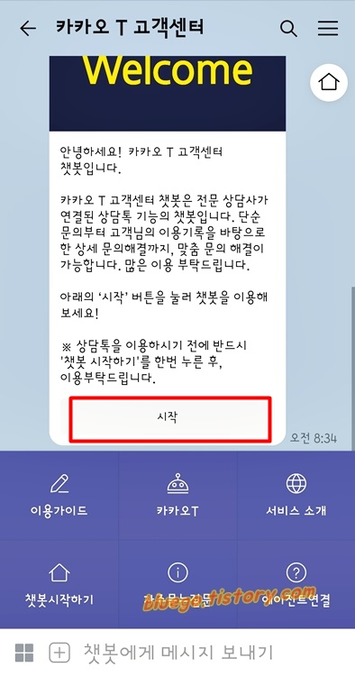 시작을 누르면 챗봇으로