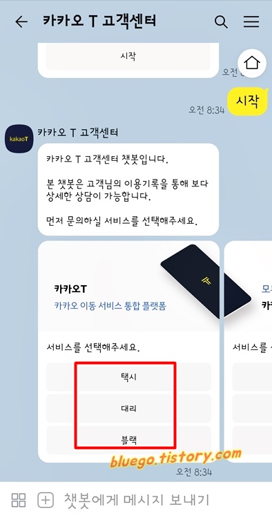 챗봇으로 카카오택시, 대리, 블랙