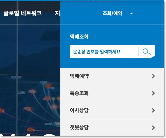 조회/예약 서비스로 들어가시면 택배조회하는 메뉴가 있습니다. 여기에 운송장 번호를 입력하면 현재 내 물건이 어디있는지 확인하실 수 있답니다.