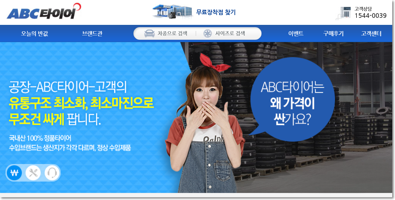 ABC타이어는 유통구조 최소화, 최소마진으로 싸게 판매한다고 합니다.