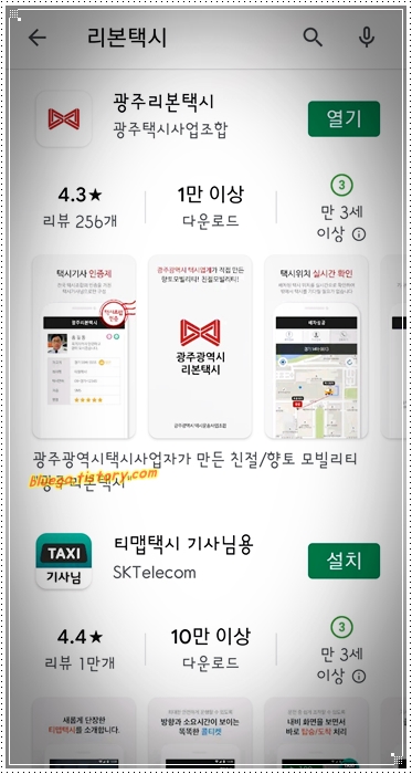 구글 플레이스토어에서 리본택시를 검색해 봤습니다. 한달정도 되었는데 다운로드가 1만정도 되었네요 광주인구가 150만정도 될텐데 아직 갈길이 먼 것 같습니다. 적극적인 홍보 부탁드려요