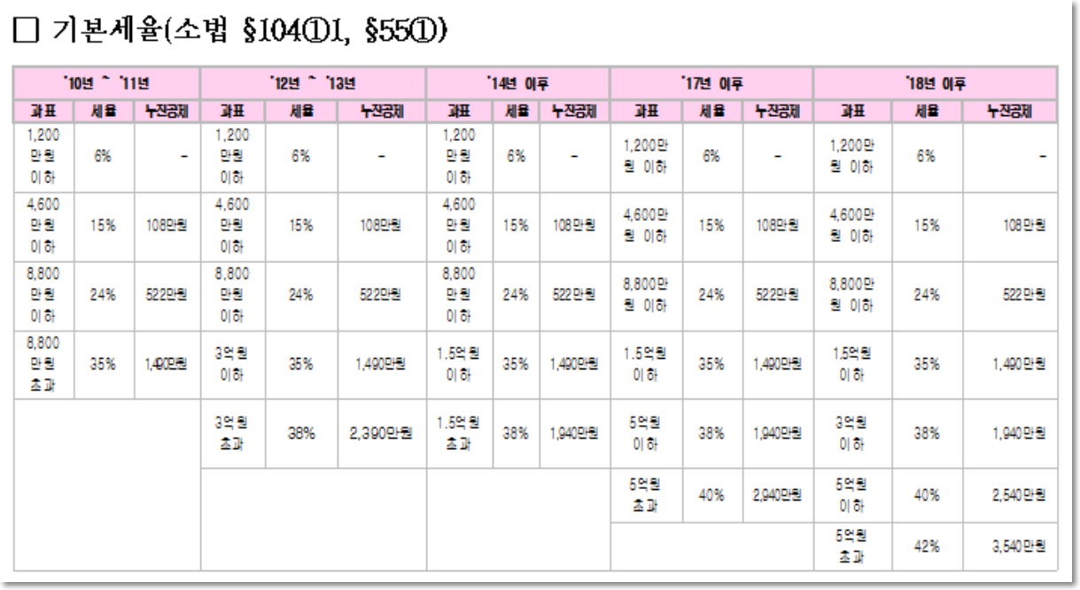 양도세 기본세율도 위 표와 같이 변화되고 있습니다. 기본세율이라는 것은 과표 즉 이익금의 크기에 따라서 세율이 달라진답니다. 이것도 새로 변동되었을 수 있겠네요. 기본 개념은 이렇다는 것만 알아두세요