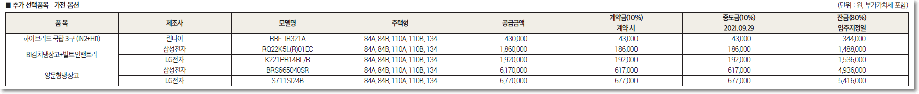 하이브리드 쿡탑이나 김치냉장고, 양문냉장고도 옵션이 있으니 참고하세요