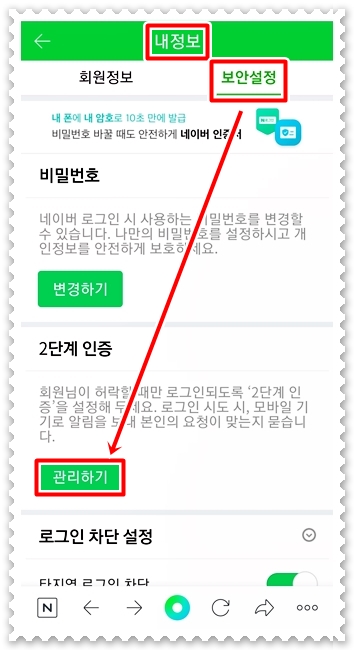 네이버 2단계 인증 보안설정