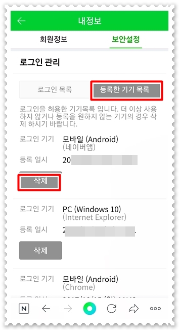 또 예전 기기를 이제 사용하지 않는다면 등록한 기기 목록에서 확인하여 지워주는게 좋겠죠? 이것 까지 처리하면 보안설정이 잘 되신 것 같습니다. 그럼 이상으로 네이버 2단계 인증 기기변경 방법에 대해 알아보았는데요. 도움이 되셨다면 하트 꾹 부탁드립니다.