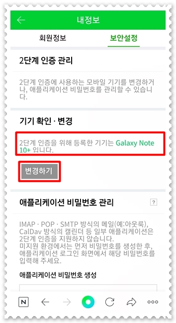 네이버 보안설정 2단계 인증 휴대폰 변경시 설정 변경필요